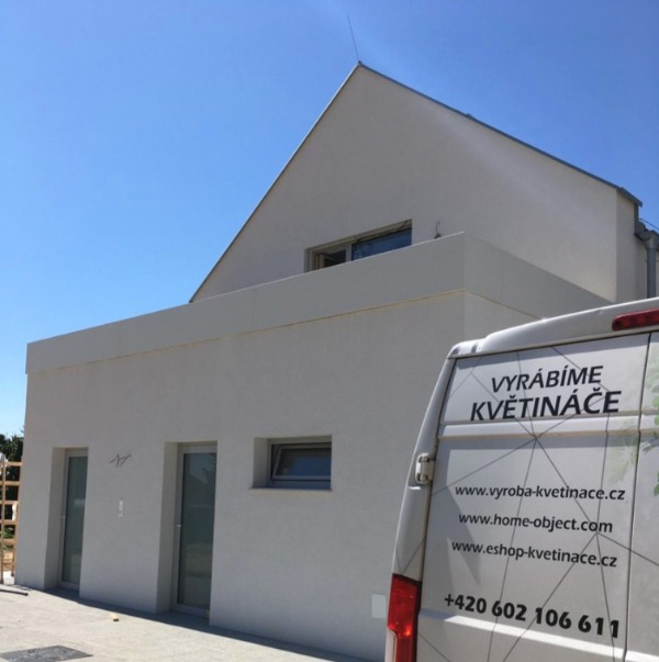 VARIANTA 9 / V prvním patře rodinného domu jsme místo zábradlí instalovali květináče, které jsou bezpečnostním i designovým prvkem zároveň. Dokonale ladí s architekturou domu.