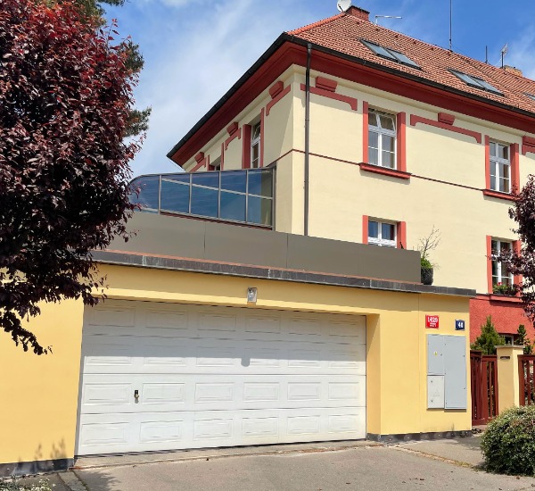 VARIANTA 9 / V prvním patře rodinného domu jsme místo zábradlí instalovali květináče, které jsou bezpečnostním i designovým prvkem zároveň. Dokonale ladí s architekturou domu.