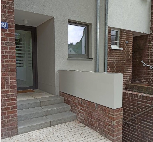 VARIANTA 5 / květináč u vstupu do domu je kotven k podkladní zdi a plní zároveň dekorativní i bezpečnostní funkci.