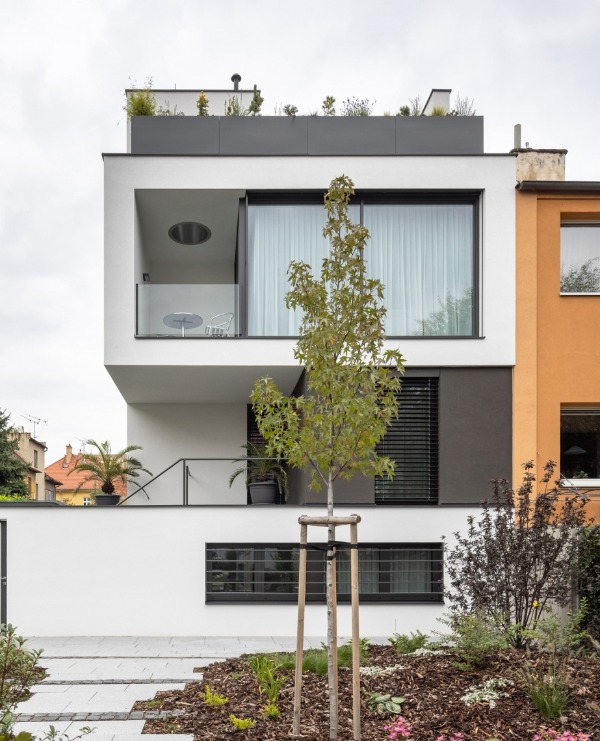VARIANTA 8 / Květináče na střeše rodinného domu přirozeně zapadají do celkové architektonické koncepce rodinného domu. V horním patře vzniká střešní terasa, která v letních měsících rozšiřuje pobytovou zónu domu.