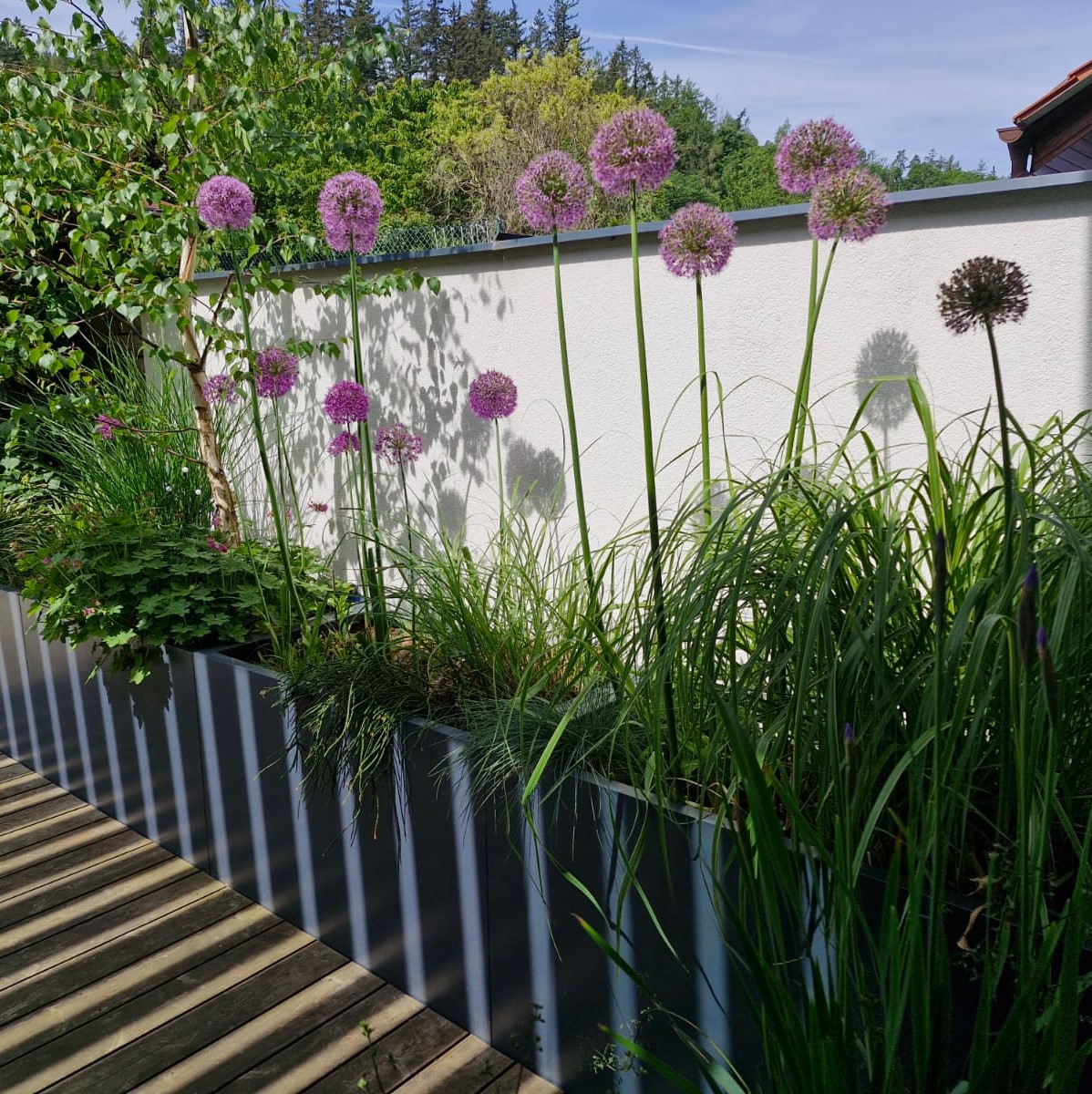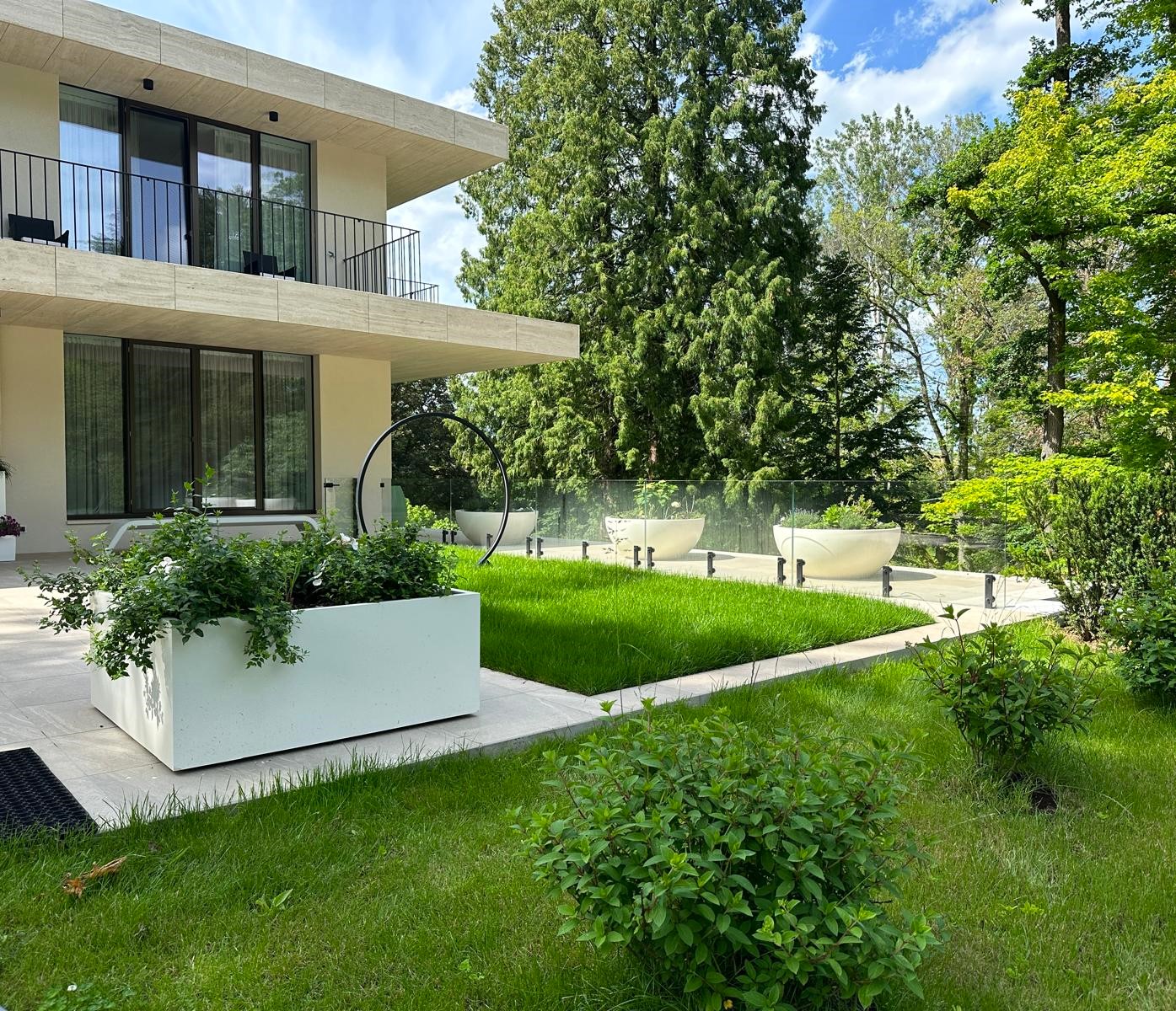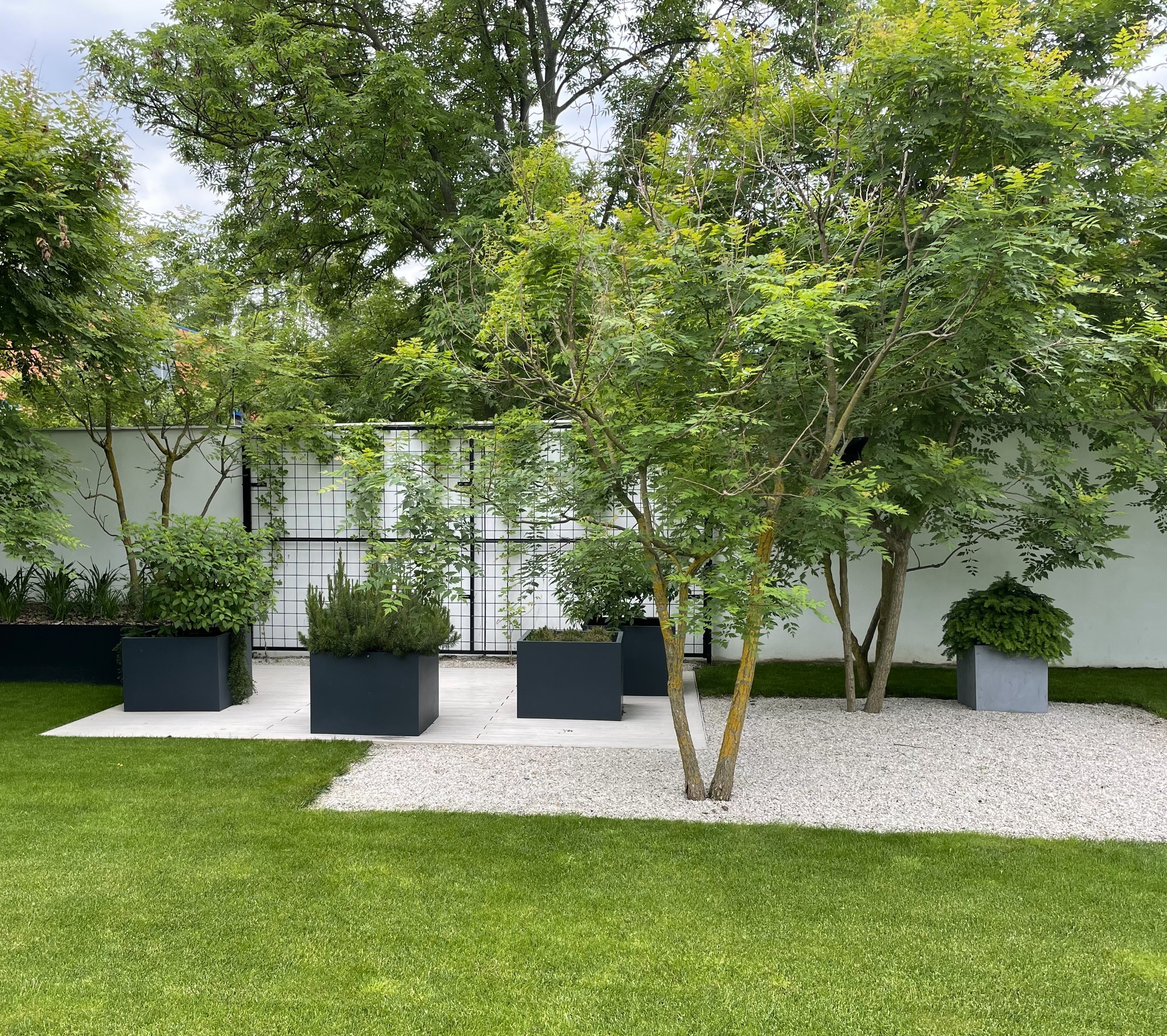 Realizace Praha / Na malém prostoru vznikla kouzelná zahrada s květináči na míru. Květináče vytvořily oázu zeleně a především soukromí majitelům.