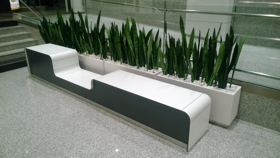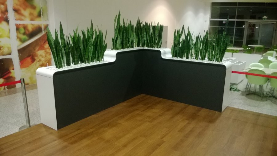 Na velké ploše bylo možné sledovat výraznou proměnu prostoru po instalaci našich výrobků. Zajímavostí této realizace jsou vertikálně zavěšené květináče se samozavlažovacím systémem, které zajišťují jednoduchou údržbu i v náročném provozu.
