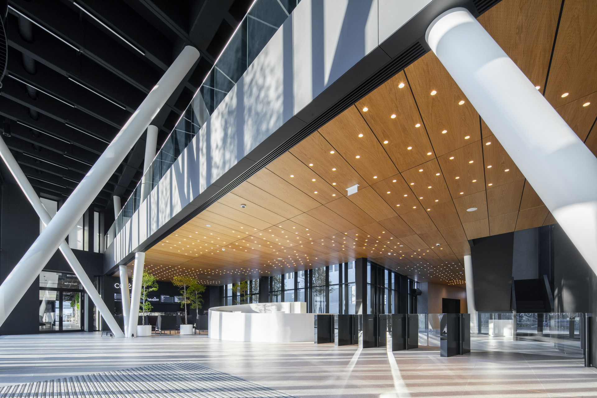 Do celkového moderního konceptu budovy zapadají také nadrozměrné bílé válce, které jsme dodávali podle návrhu architektonického studia Šebo Lichý.