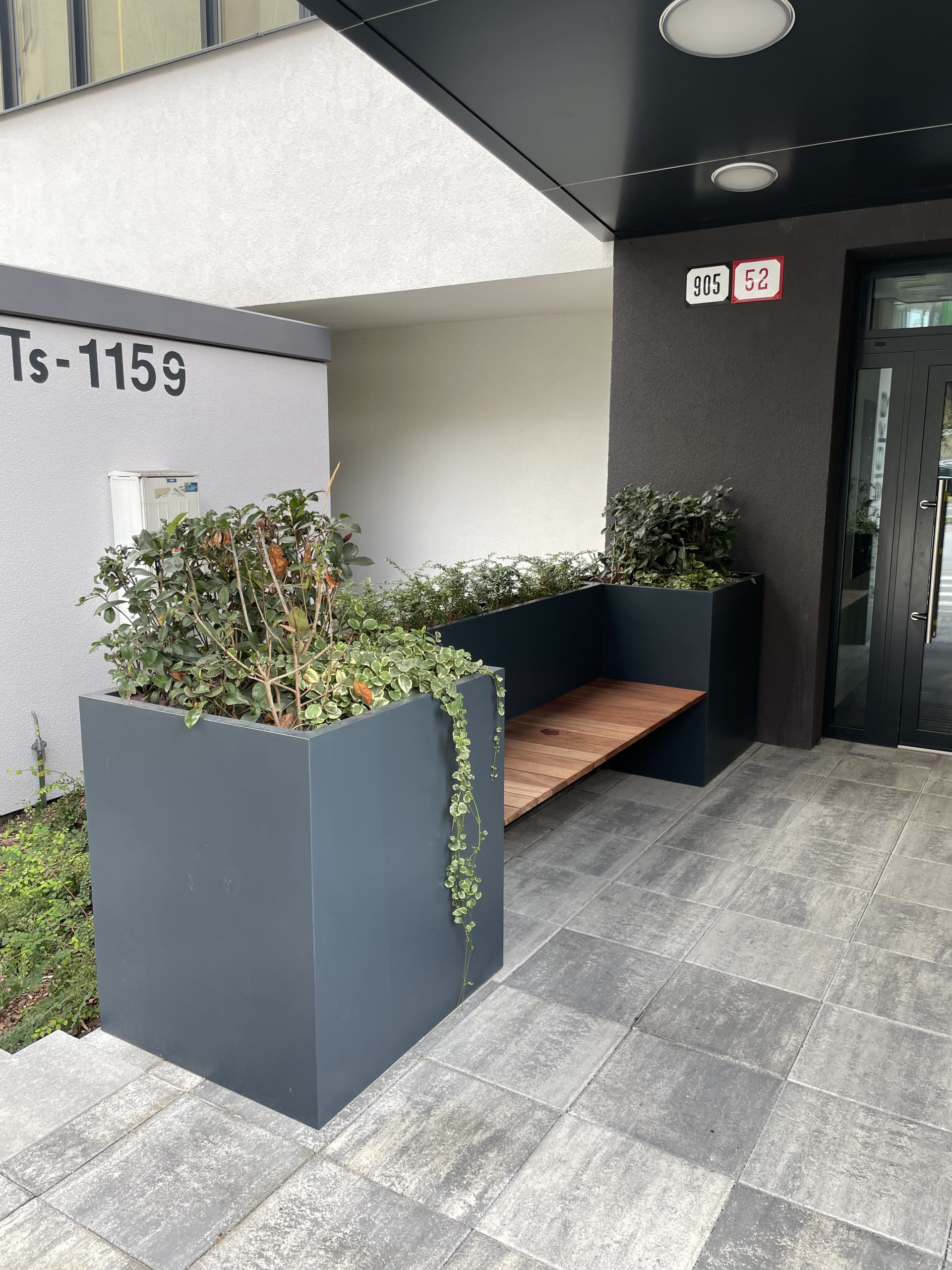 Výroba květináče s lavicí zahrnovala kombinaci sklolaminátu a exotického dřeva, což jsou vysoce odolné materiály vhodné pro venkovní instalace. Pro květináč jsme použili sklolaminát, který je známý svou vysokou odolností vůči povětrnostním podmínkám a fyzickému namáhání. Prostorná lavice je vyrobená z exotického dřeva jatoba a udržuje se olejováním.