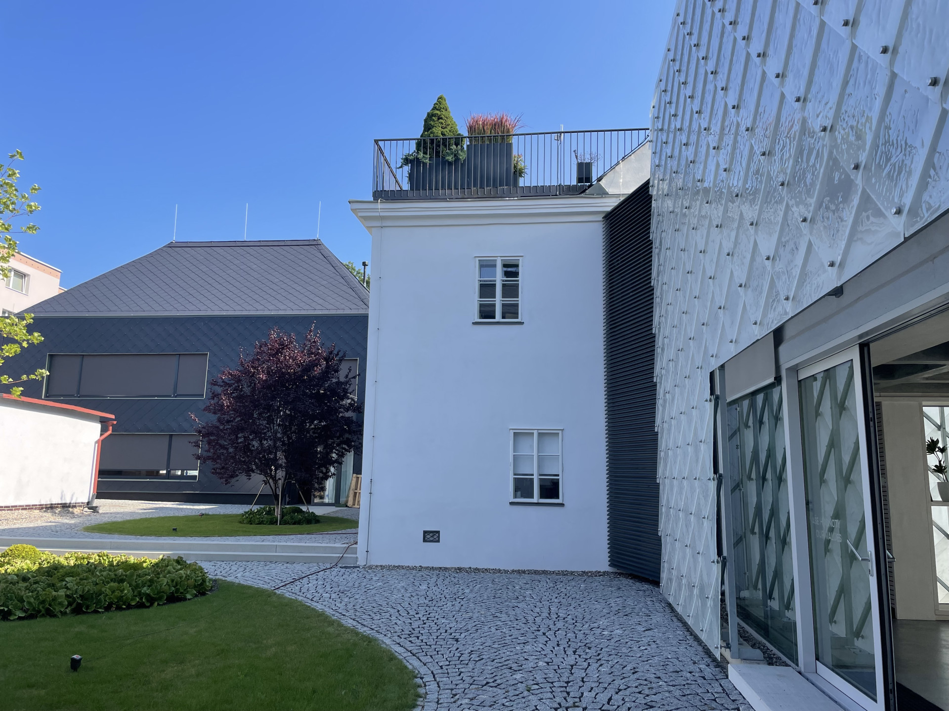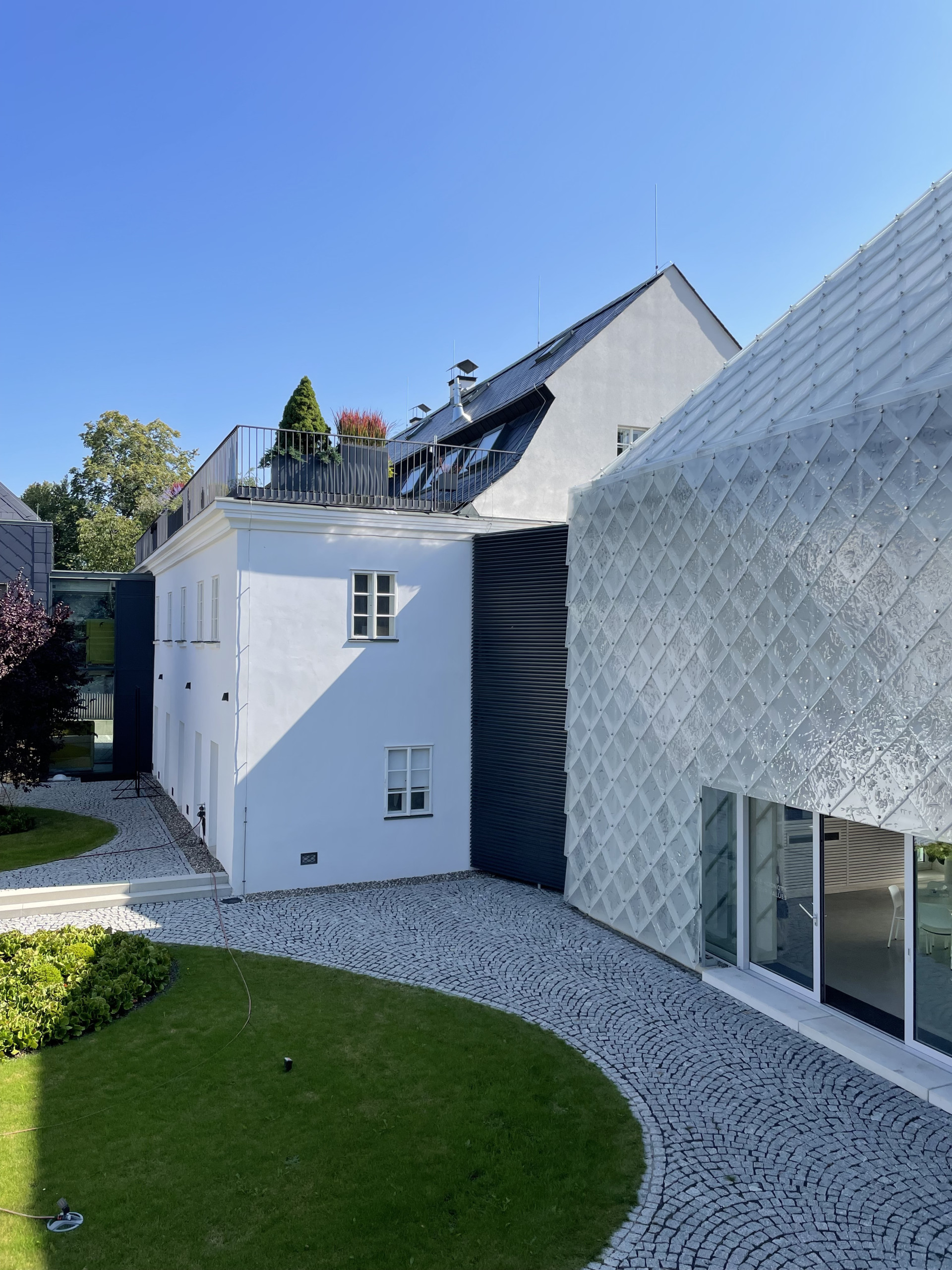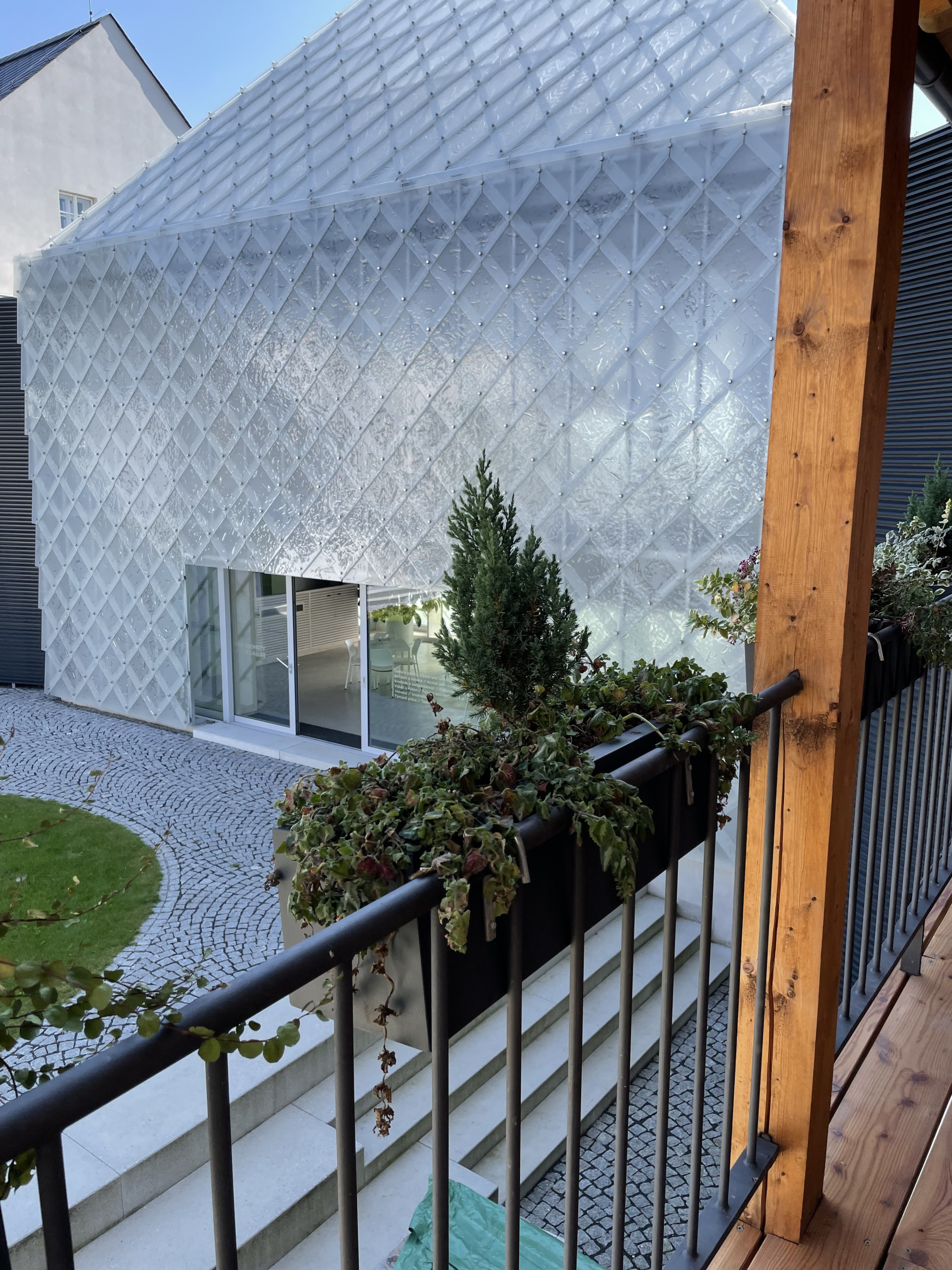 Naše květináče jsou velice často součástí unikátních projektů a zajímavých architektonických počinů. Jednu takovou zakázku jsme vyráběli pro sklářskou společnost LASVIT. Ta se rozhodla pro obnovu památkově chráněných objektů a jejich adaptaci na novou funkci - firemní sídlo. Stavba získala v roce 2020 titul stavba roku a my jsme mohli být u toho. Součástí původní budovy, která prošla kompletní rekonstrukcí, je také střešní terasa, která tvoří odpočinkovou zónu a relaxační terasu pro zaměstnance. Z terasy se nabízí nádherný výhled na celý areál a návštěvník má doslova na dosah skleněnou fasádu nové budovy, která je součástí projektu.