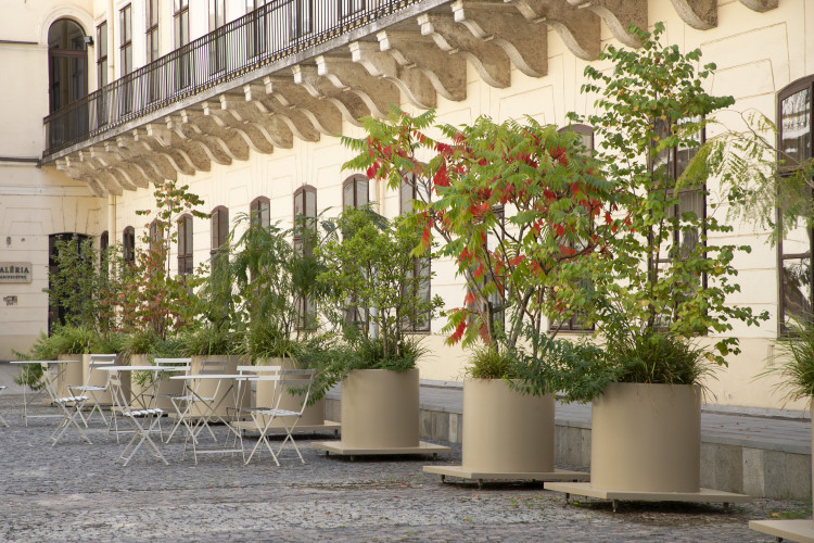 Galerie v Košicích pracuje s aktuálními tématy dnešní doby, jako jsou například klimatická změna, sociální nerovnost, segregace, nenávist vůči jinakosti a spousty dalších. To vše nám je velice blízké a možná také proto výborně fungovala vzájemná komunikace a spolupráce. Naše instalace květináčů se nachází na nádvoří budovy a jako již tolikrát předtím se nám osvědčilo kouzlo a síla květináčů, které v případě povedeného projektu dokáží povznést daný prostor. Nabízíme Vám pohled na dvůr, kde nebyly žádné nádoby. Nádherné místo s obrovským potenciálem. Jsme přesvědčeni o tom, že se tento potenciál podařilo díky vkusné instalaci mobilních květináčů naplnit.