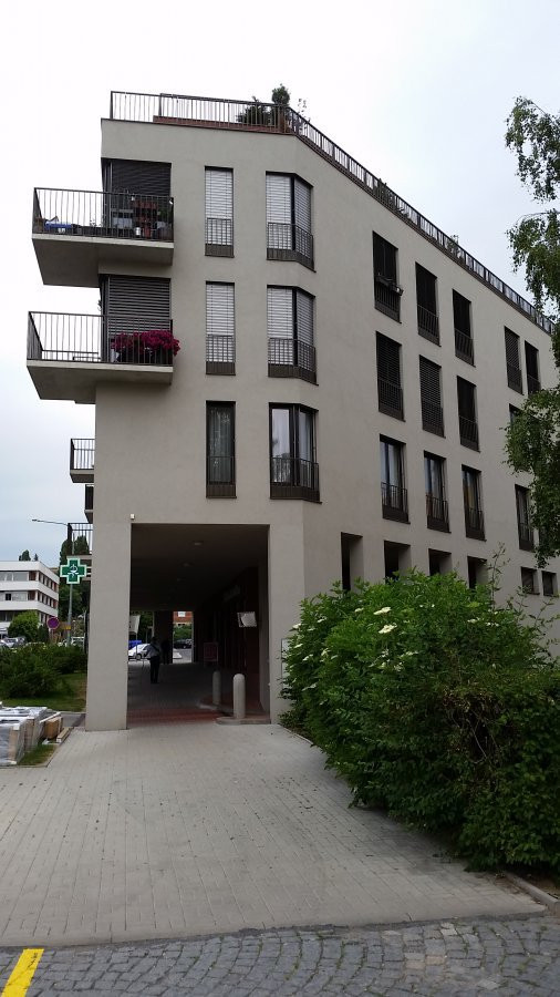 Rozvržení zeleně je komponováno do pravoúhlých ostrovů, které vizuálně navazují na charakter dělení teras mezi byty. Sklolaminátové nádoby jsou umístěny solitérně, takže jednoduché tvary květináčů designových květináčů nechávají prostor vyniknout rostlinám samotným.